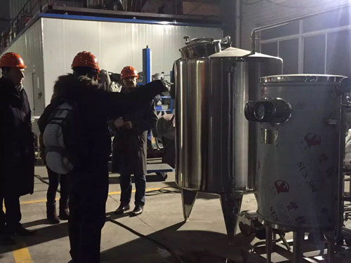 經過與外貿業(yè)務員的多次溝通與確認,加拿大客戶于2015年10月在我公司下單一臺真空乳化機。目前設備已接近收尾工作,客戶來我公司驗貨,業(yè)務員與技術工程師熱情接待并為其講解了真空乳化機的各組成部件與操作方法,并進行了試機操作,后又帶客戶參觀了我公司的其它食品機械設備。